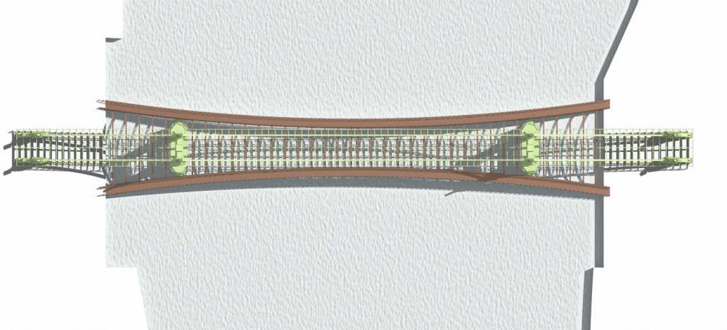 Now Baynes and Mitchell Architects has thrown its hat into the ring, submitting a speculative proposal to the government’s Hammersmith Bridge Taskforce, Hammersmith & Fulham Council and Richmond upon Thames Council. Its design involves a new structure being interwoven with the old, without touching it, to provide support for a new roadway. Two new cycle highways would sit either side of the old bridge, starting and ending on the towpaths. A temporary floating island beneath the center of the bridge would provide support for cranes and incomplete structures during the building process, with barges docking here with construction materials. The practice estimates the cost of construction, which would take two years, to be £110M excluding VAT, fees and legal costs.