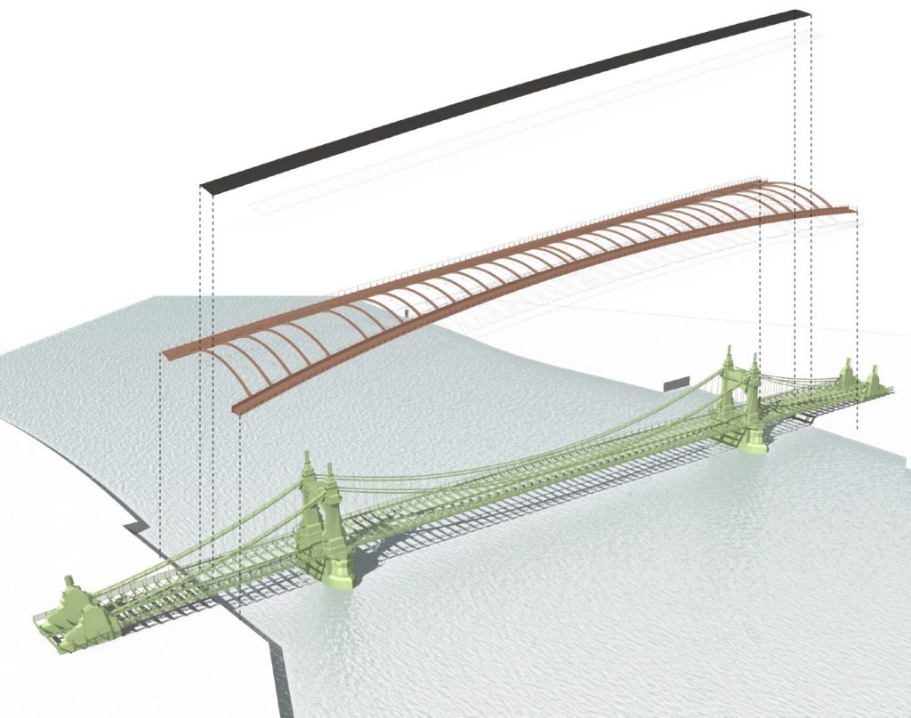 The proposal was drawn up with advice from consulting engineer Michael Hadi Associates. Director Michael Hadi said: ‘We are very excited about engaging with residents, businesses and schools on both sides of the river and to be involved in the discussion to [ensure] the long-term future of this much-loved piece of London’s heritage. Our team’s solution offers the best value and fastest approach to reopening the bridge. It is legible as a modern intervention, offering a gentle helping hand to the retained 19th-century fabric.”