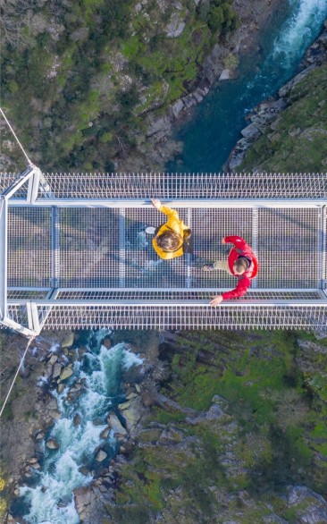 A 516-meters-long structure in Arouca Geopark in Portugal is now Europe's longest pedestrian suspension bridge. The bridge crosses the Paiva Gorge connecting the opposing granite rock outcrop cliffs, and is positioned 175 meters above the river.