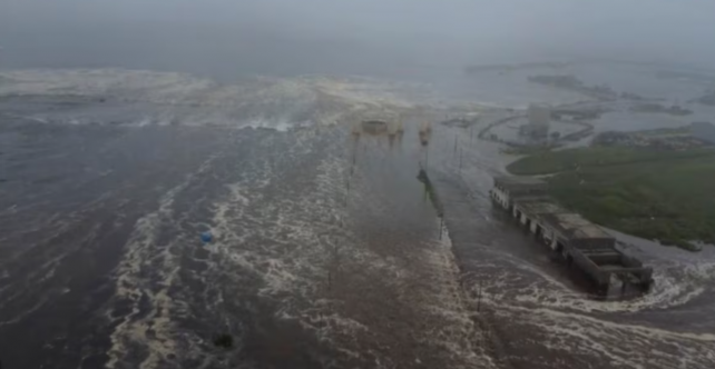 Tsunami waves flooded an area after a powerful magnitude 8.8 earthquake struck off Russia’s far eastern Kamchatka Peninsula, in Severo-Kurilsk, Sakhalin Region, Russia, in this still image taken from video. Kamchatka branch of the Geophysical Survey of the Russian Academy of Sciences