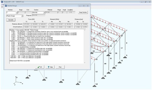 Structural Steel Design that includes: AISC-ASD89, AISC-LRFD93, BS5950, CISC94 and EuroCode 3 to improve and optimize the members of the structure. Analysis3D validates the strength of each member and proposes the minimal Cross Section for the loads applied.
