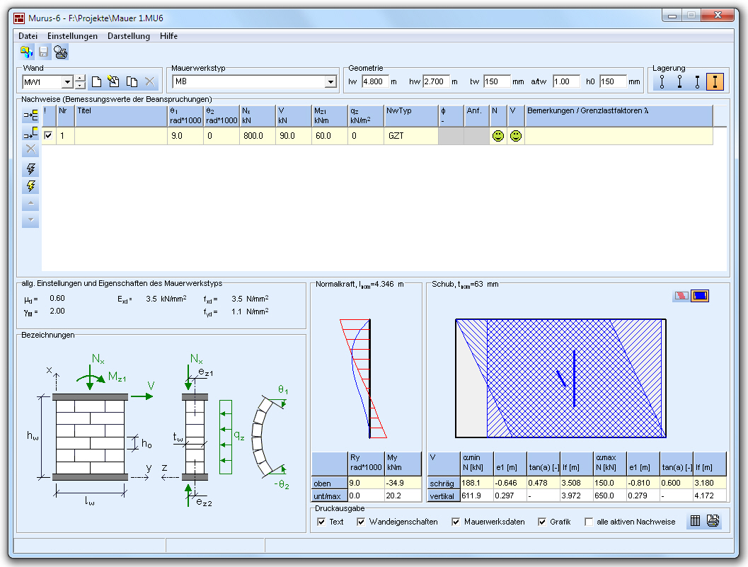 MURUS serves also as postprocessor for the building module of CEDRUS. It carries out the verifications for all brick walls for a series of selectable loading combinations.